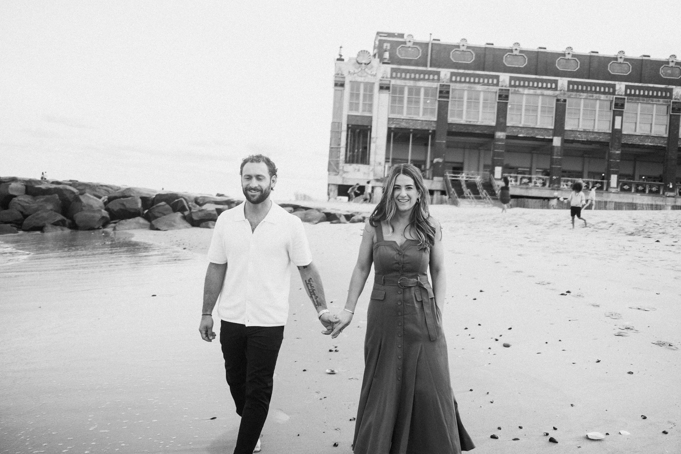 Alex and Mike's engagement session on Asbury Park's shores - where classical romance meets the timeless pull of the ocean